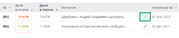 Для большинства источников в списке источников отчета выводится прямая ссылка на расположение документа или текста источника в интернете. Для перехода на страницу в Интернете нажмите на иконку.