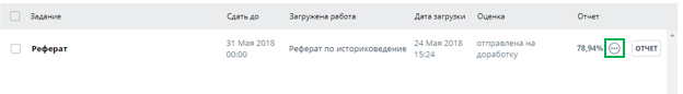 Если преподаватель оставил комментарий, то после оценки или отправки на доработку ссылка на данный комментарий будет доступна в кабинете студента в графе «Отчет» на строке с работой.